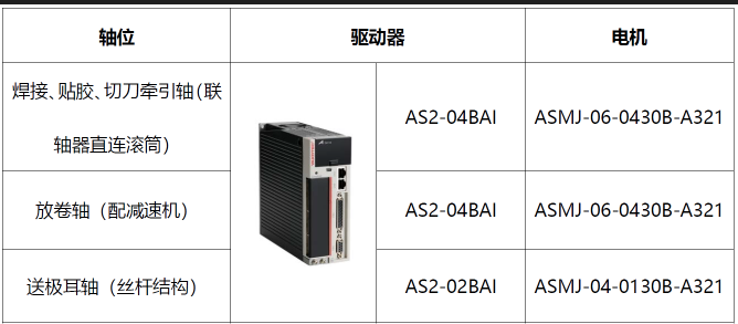 本定制案例應(yīng)用于焊接牽引軸、貼膠牽引軸、切刀牽引軸三個(gè)定長(zhǎng)牽引軸、送極耳軸和卷繞軸。