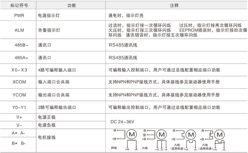 該驅(qū)動(dòng)器在功能上可以完全替代傳統(tǒng)脈沖方向控制的步進(jìn)驅(qū)動(dòng)器。驅(qū)動(dòng)器內(nèi)置總線通訊功能,采用MODBUS-RTU總線通訊,用戶可同時(shí)控制32臺(tái)驅(qū)動(dòng)器。驅(qū)動(dòng)器具有豐富的輸入輸出接口,用于完成位置控制,速度控制,回原點(diǎn)等單軸運(yùn)動(dòng)控制功能。