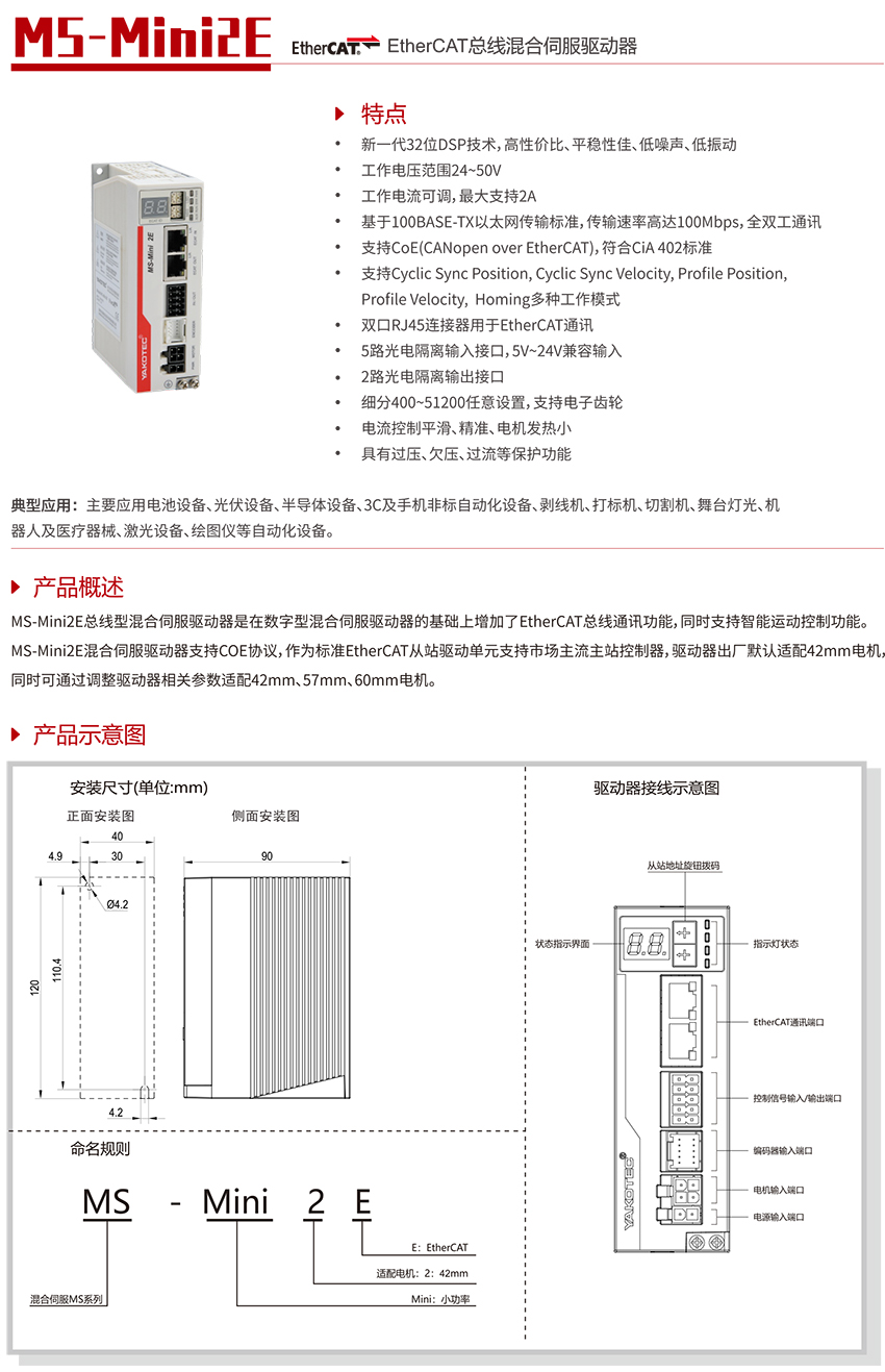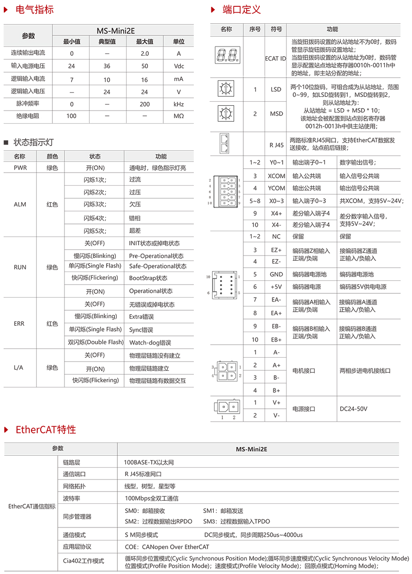 支持CoE(CANopen over EtherCAT),符合CiA 402標(biāo)準(zhǔn)